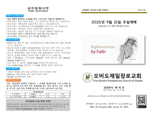 2025년 9월 21일 주일주보 페이지 정보 작성자 오비도제일장로교회 댓글 0건 조회 292회 작성일 25-09-21 05:15 목록 본문 2025년 9월 21일 주일주보입니다. 이전글2025년 9월 28일 주일주보 25.09.28 다음글2025년 9월 14일 주일주보 25.09.19 댓글 0 댓글목록 등록된 댓글이 없습니다. 목록